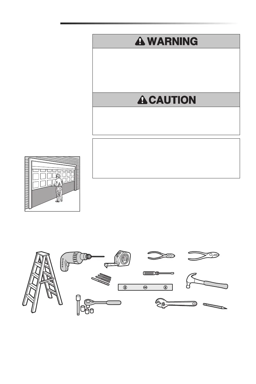• NEVER try to loosen, move or adjust door, door springs, cables, pulleys, brackets
