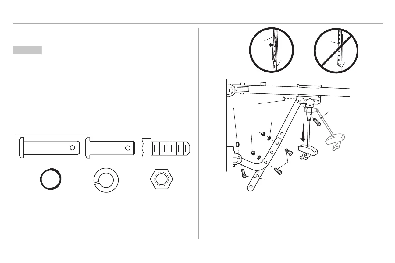 3. Attach the curved door arm to the door bracketusing the clevispin. Secure with the ring fastener.