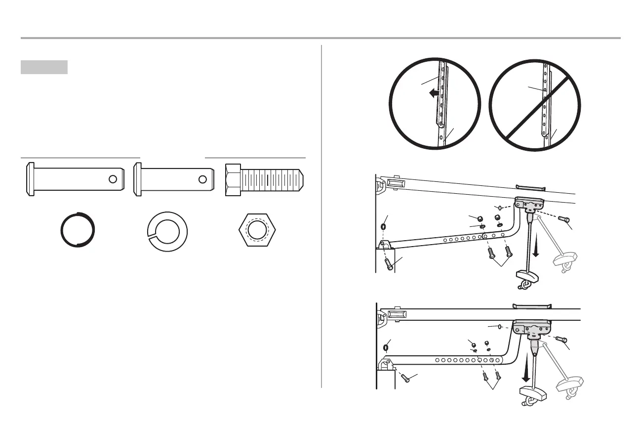 3. Attach the straightdoor arm to the door bracketusing the clevispin. Secure with the ring fastener.