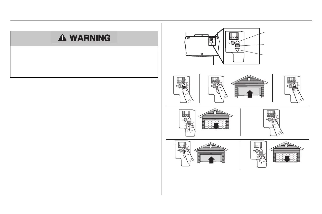 6. Pressand release the UP Button.When the door travels to the programmed UP position, the