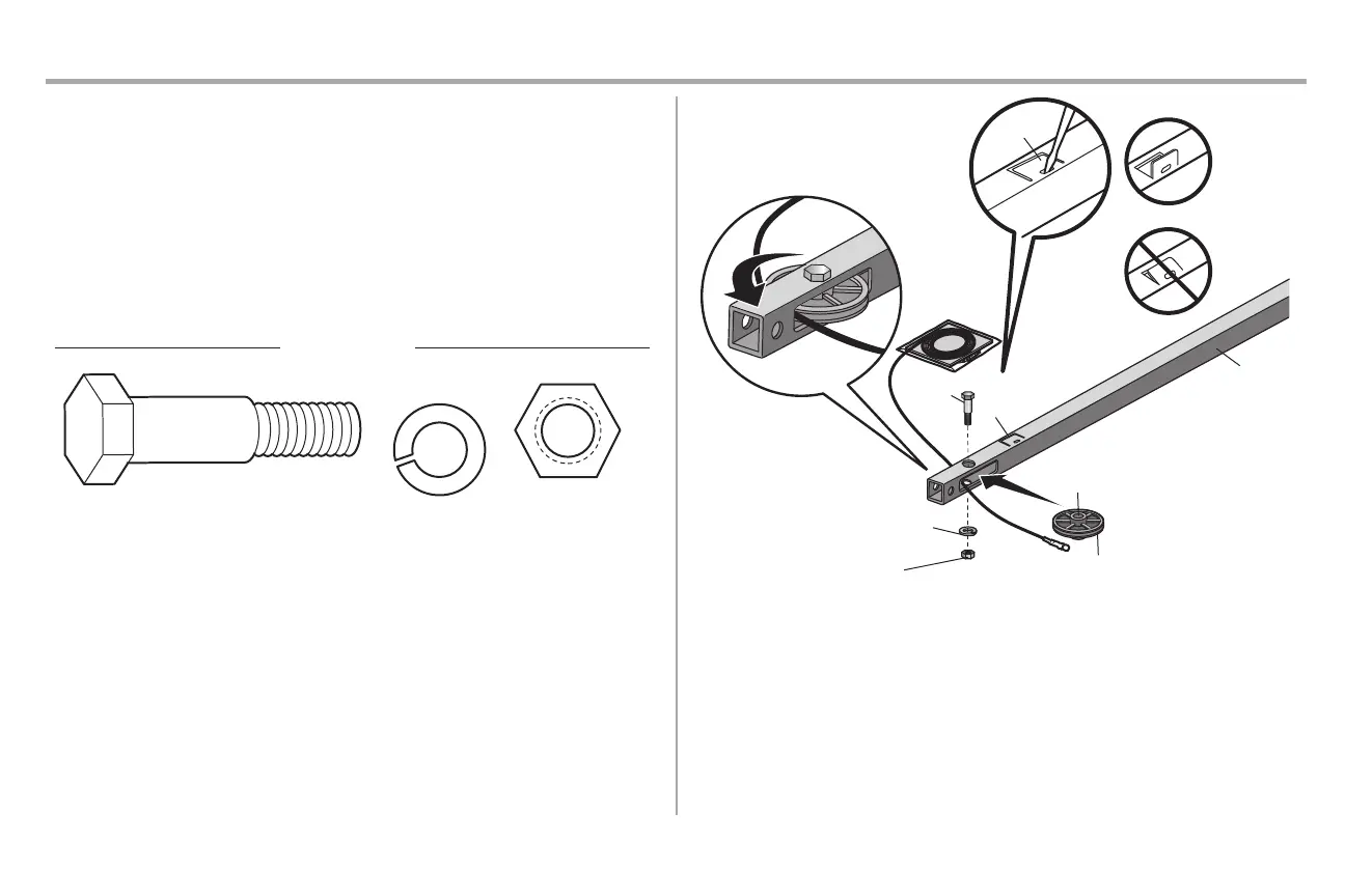 4. Insertthe idler bolt from the top through the rail and pulley.Tighten with a 3/8" lock washer and