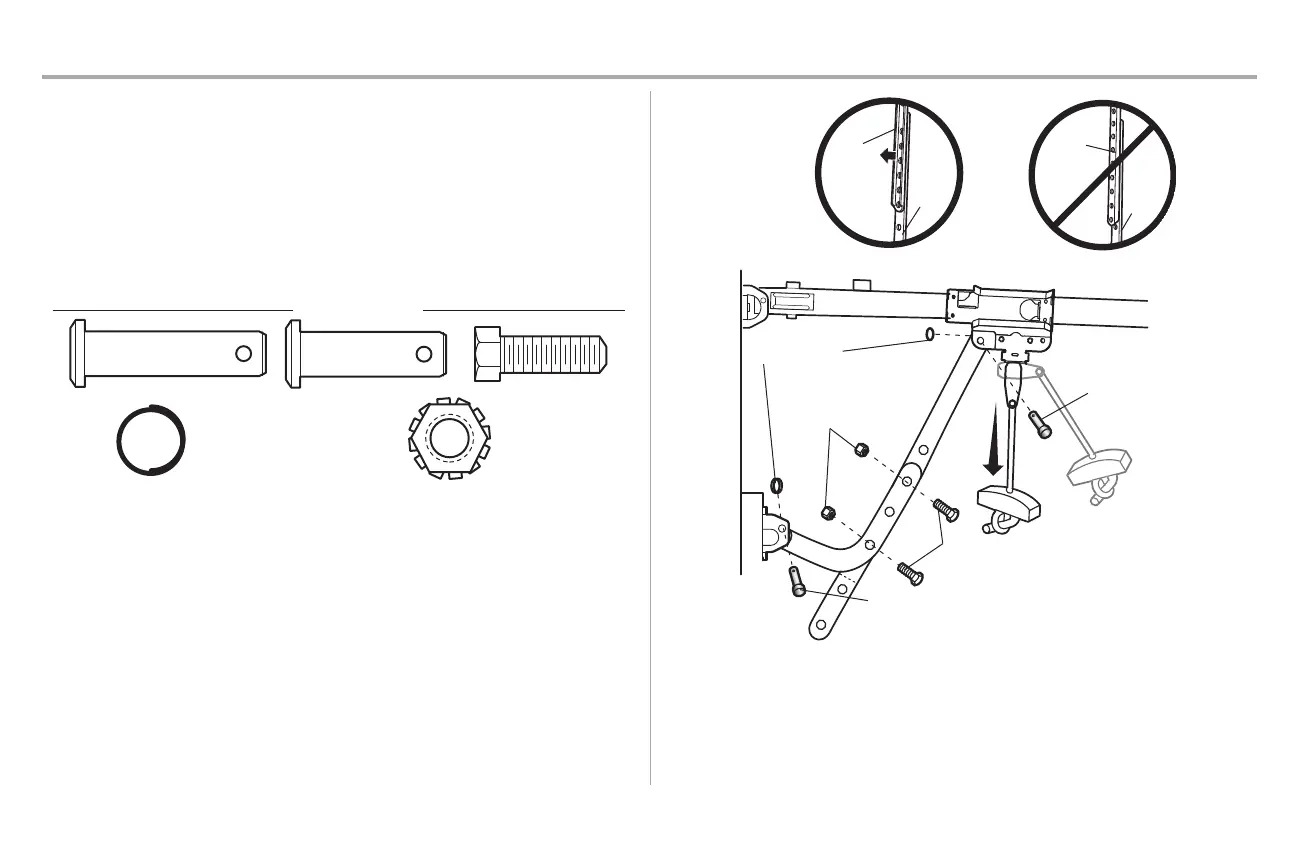 3. Attach the curved door arm to the door bracket using the clevis pin. Secure with the ring fastener.