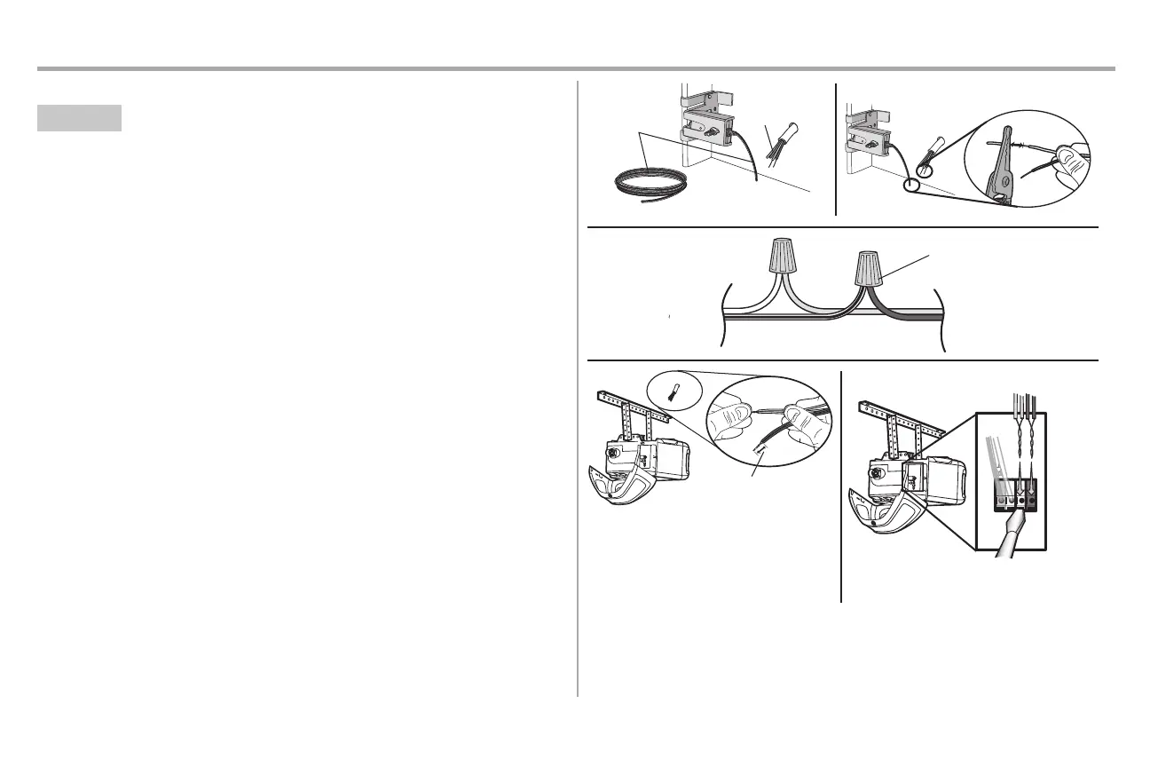 4. Atthe garage door opener,strip 7/16 inch (11 mm) ofinsulation from each end of the wires