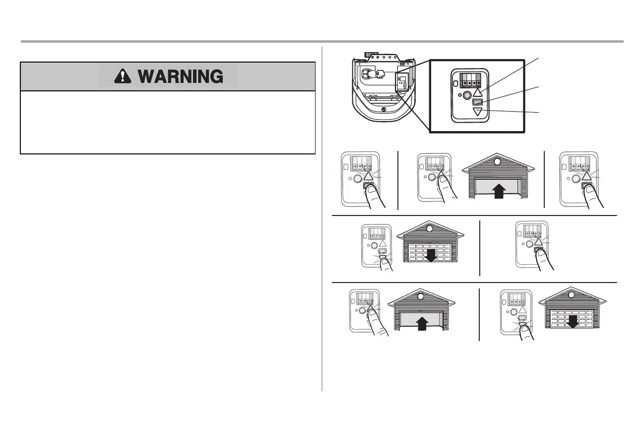 While programming,the UP and DOWN buttonscan be used to move the door asneeded.