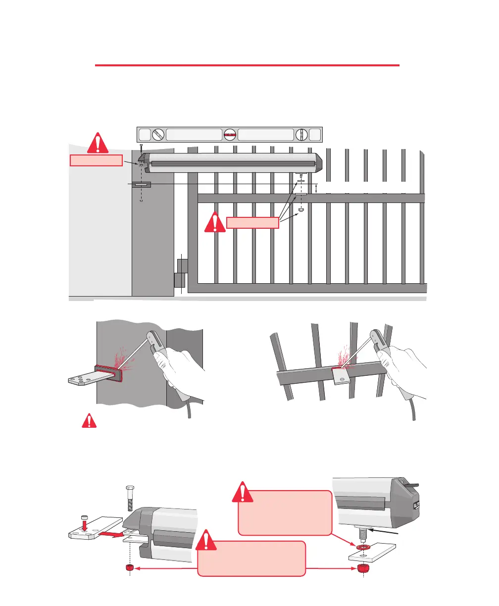 Welding the brackets with the operator attached to the gate may damage the operator.