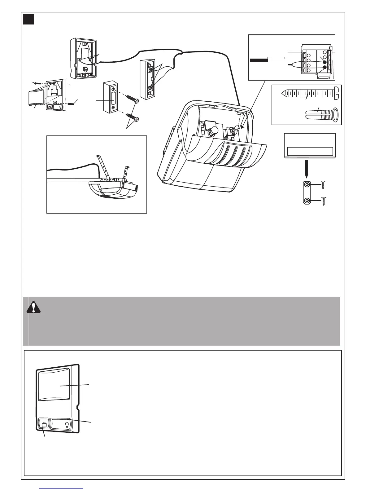 Fasten the door control to an inside garage wall with sheet metal screws (3) provided. Drill 4mm (5/32") holes and