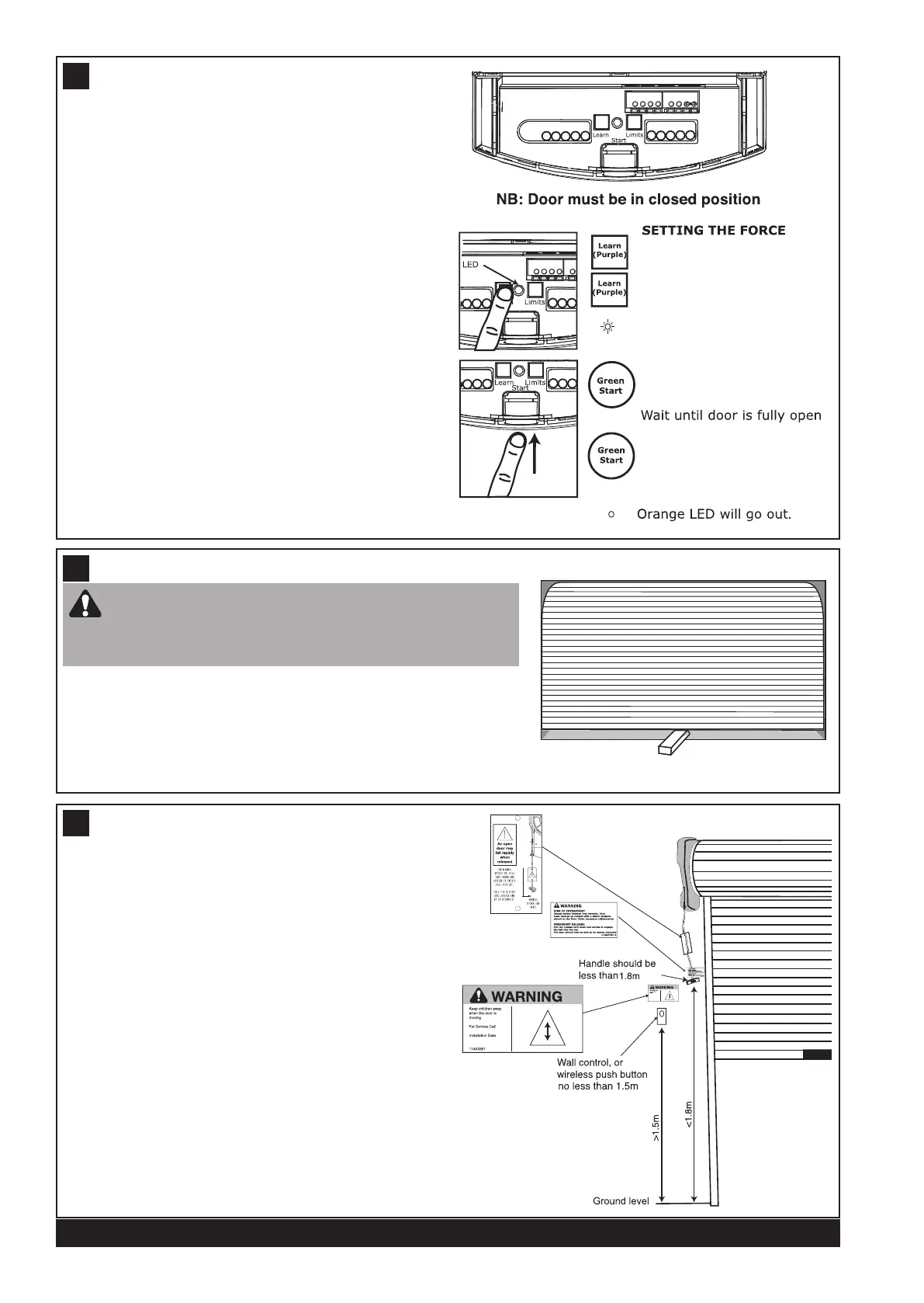 • The door must travel through a complete cycle, up and
