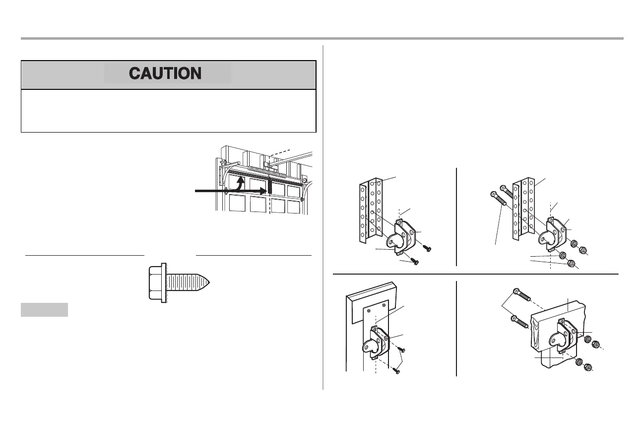 l Drill 3/16" fastening holes. Secure the door bracket using the two 1/4"-14x5/8" self threading