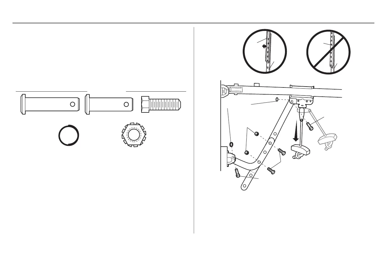 3. Attach the curved door arm to the door bracket using the clevis pin. Secure with the ring fastener.