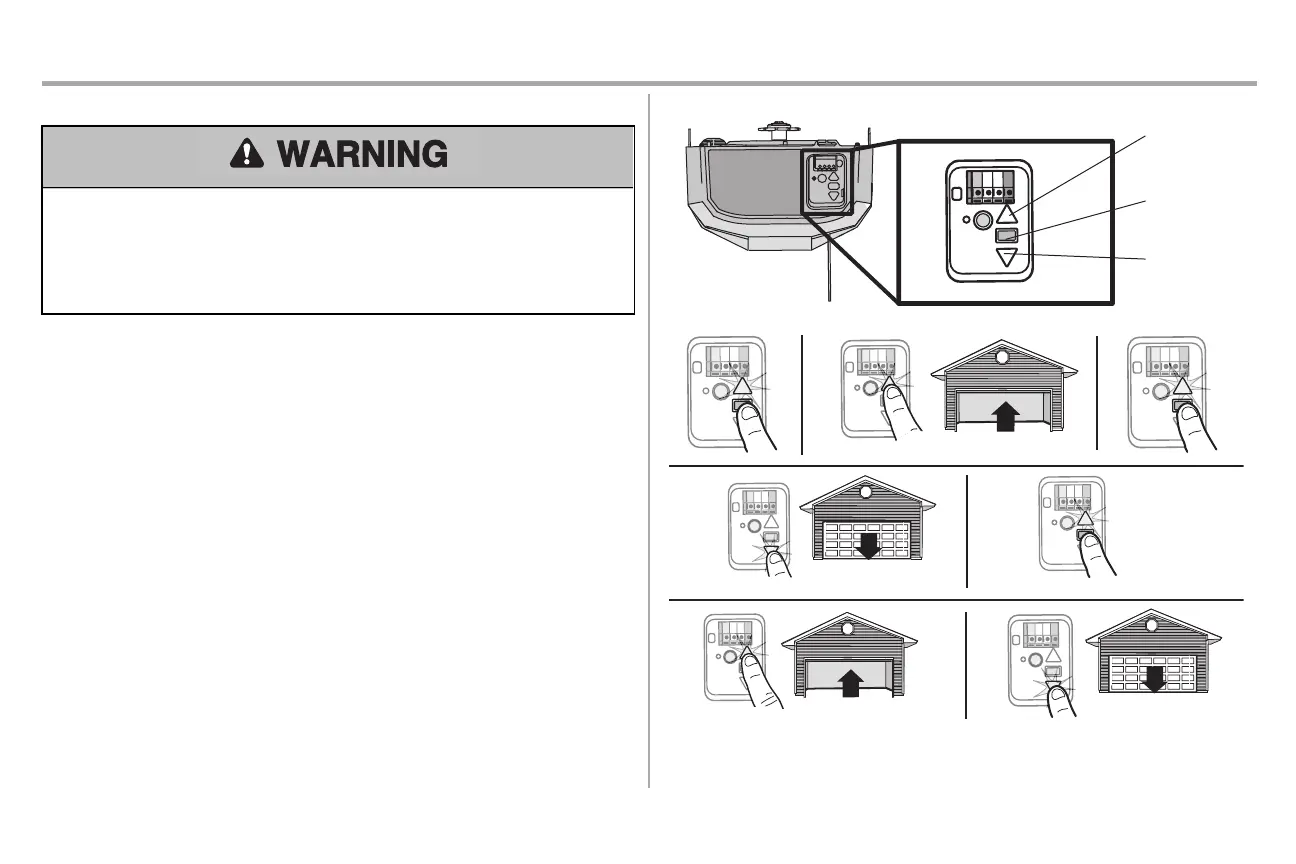 6. Pressand release the UP Button.When the door travels to the programmed UP position,the