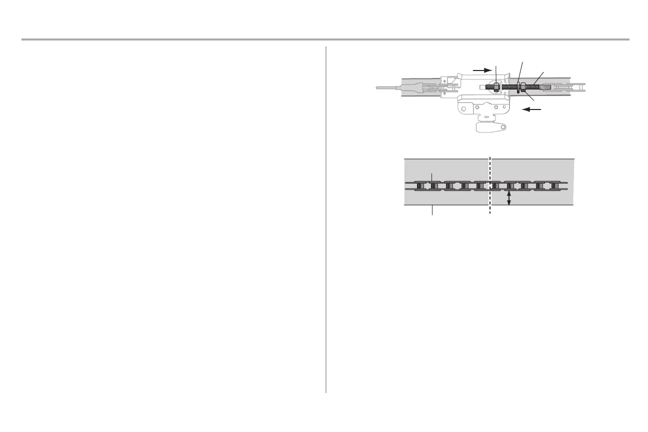 3. Lorsque la chaîne est à environ 1/4 po (6 mm) au-dessus du patin du rail en son point milieu, resserrer l'écrou