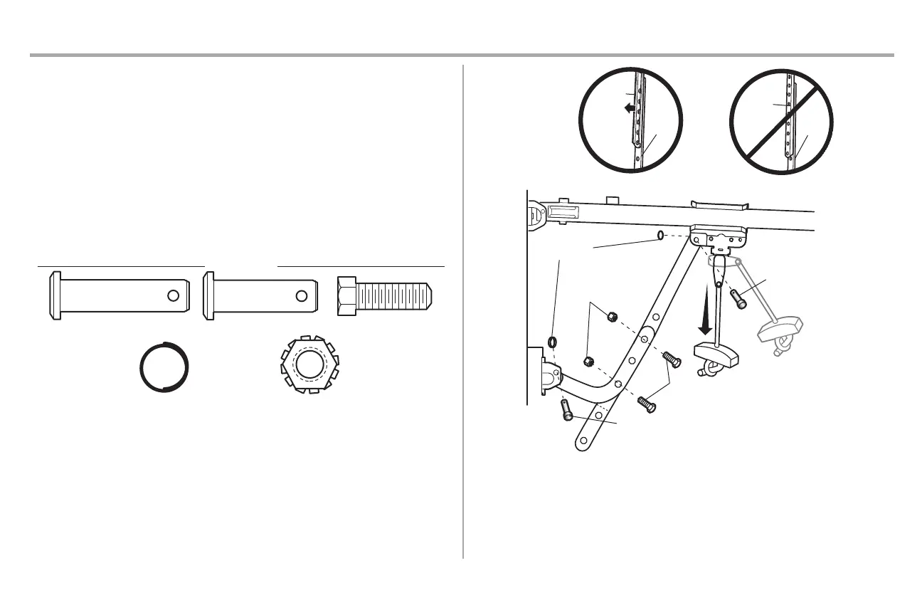 IMPORTANT: la rainure de la biellette de porte droite DOIT pointer loin de la biellette de porte courbée.
