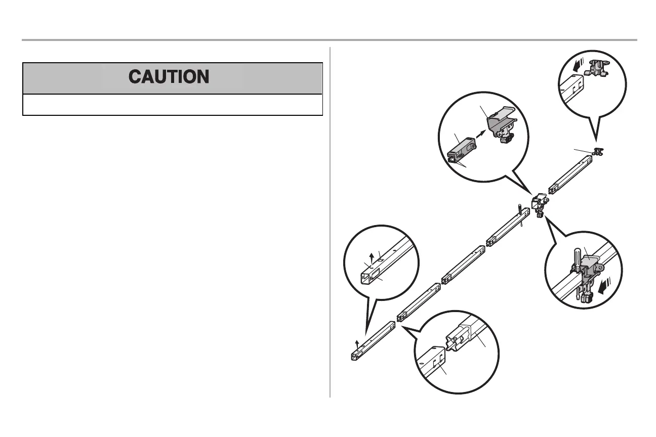 align the rail sections.Slide the tapered ends into the larger ones. Tabs along the side will lock