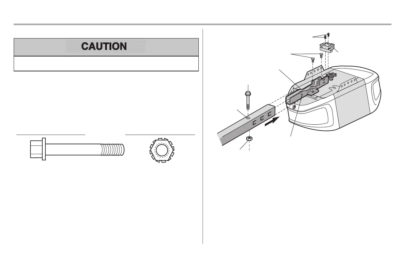 To avoid SERIOUS damage to garage door opener, use ONLY those bolts/fasteners mounted in the
