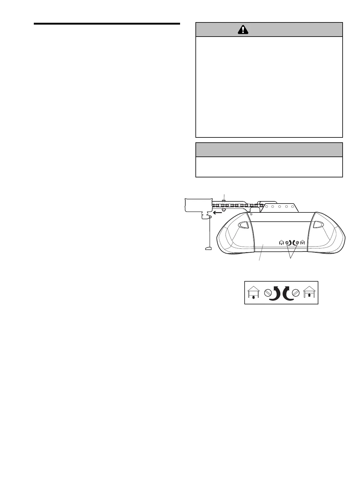 • Incorrect adjustment of garage door travel limits will