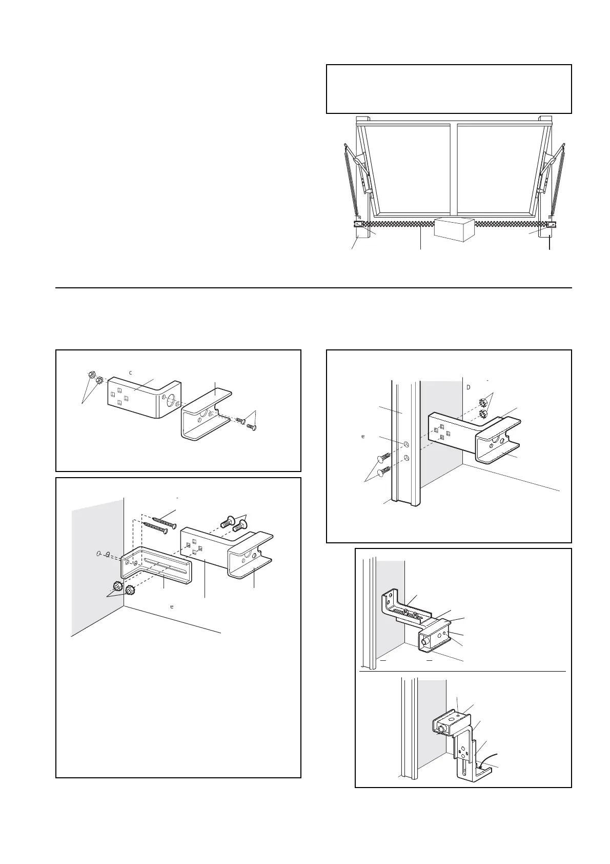 • Fissare i pezzi a forma di "C" alle mensole di montagggio