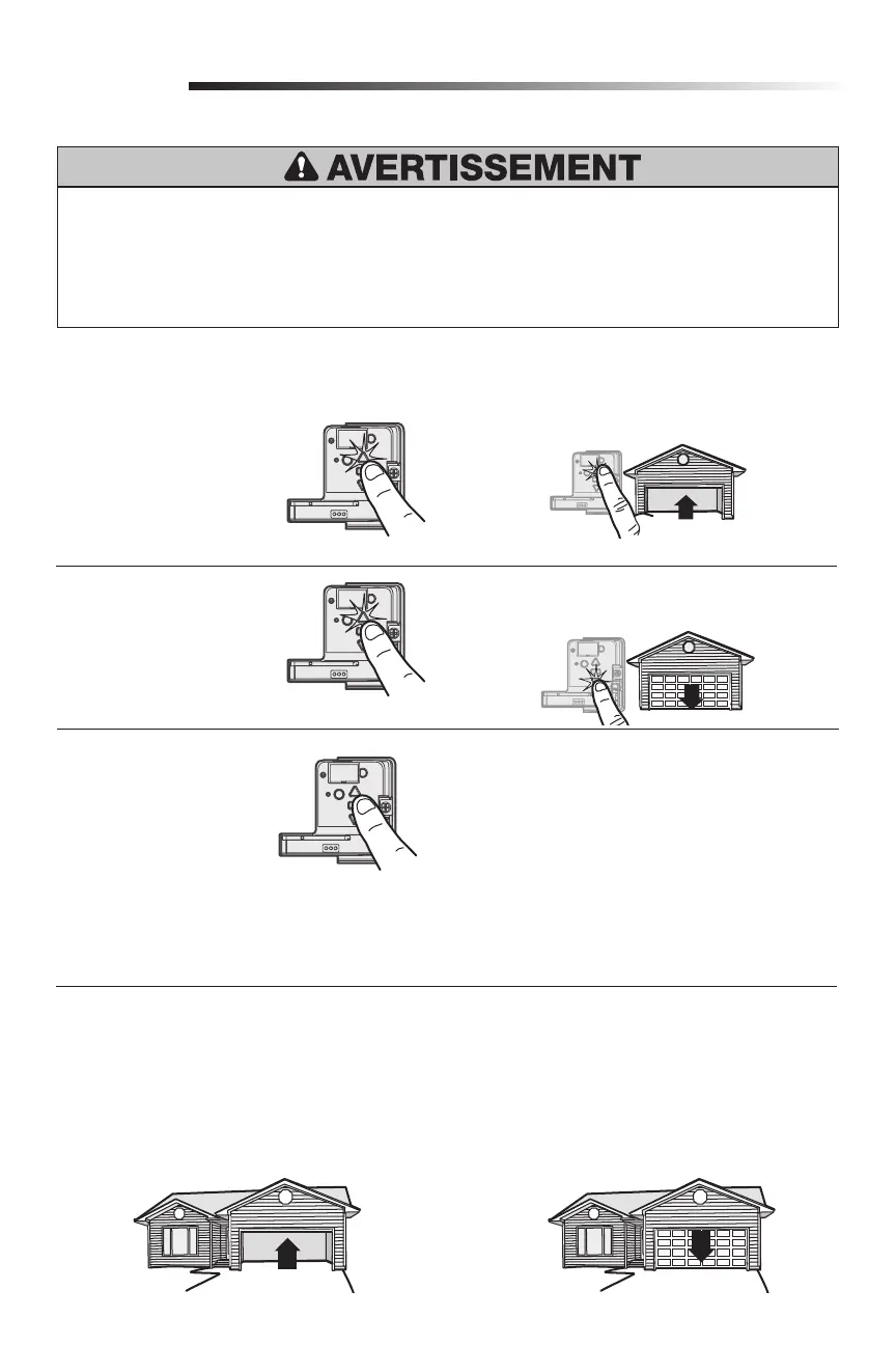 visuelle avant d’ouvrir et de fermer automatiquement la porte. L’ouvre-porte de garage émet trois bips, confirmant que la
