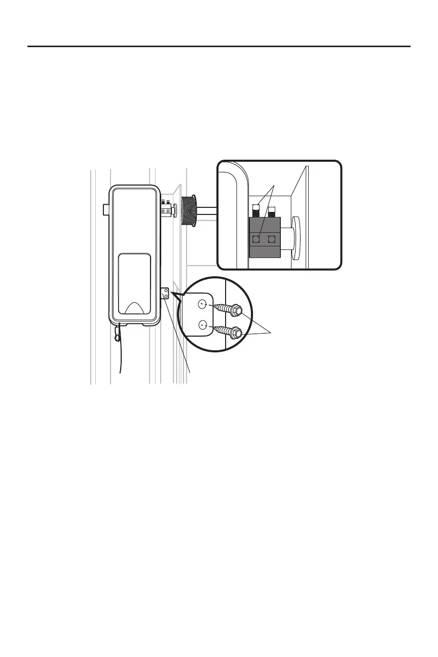 9. Secure the mounting bracket to the wall and to the garage door opener. Use the 14-10x2" screws to secure the