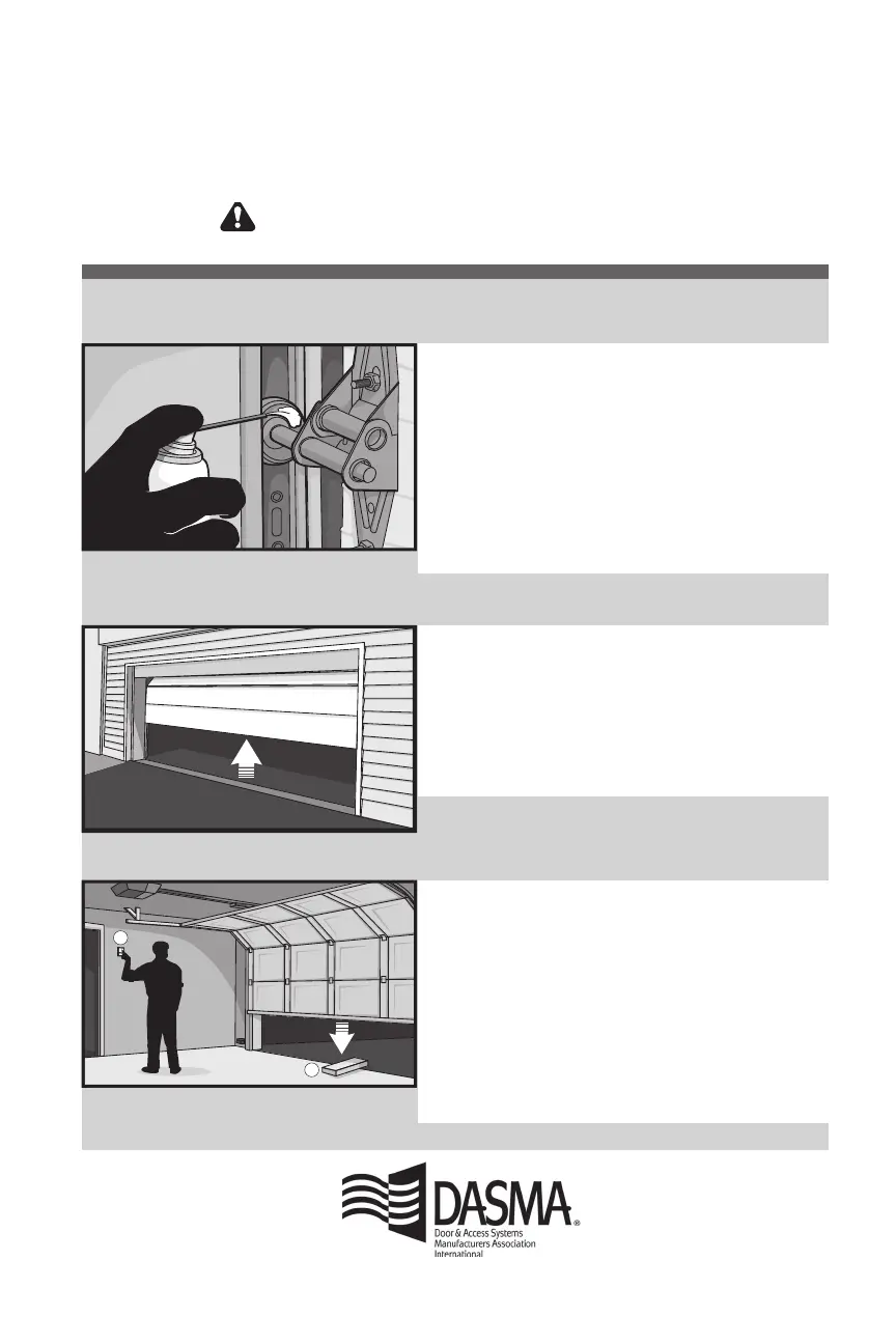 Make monthly inspection and testing of your garage door and opener system a part of your regular routine.