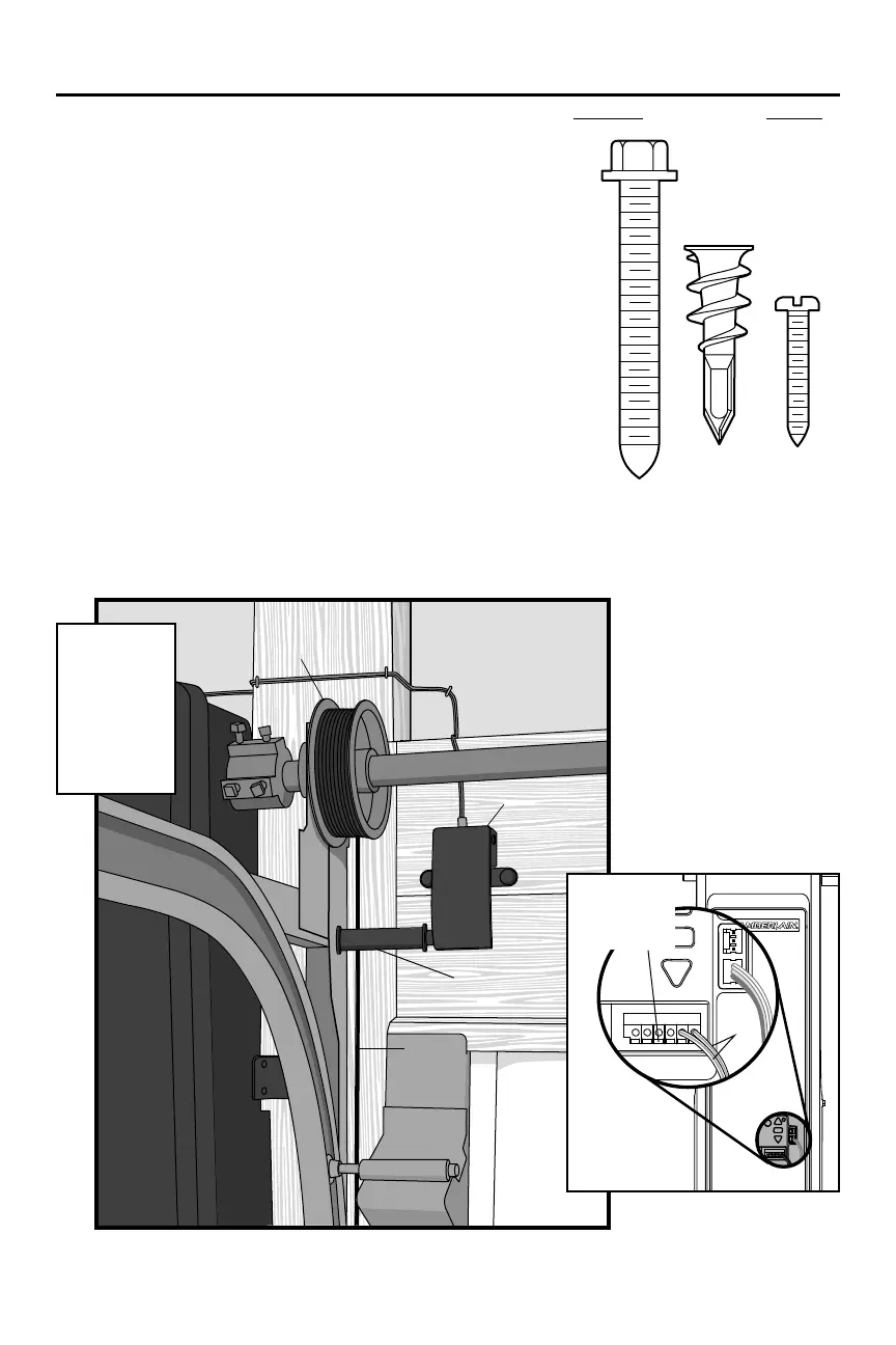 3. Run wire to garage door opener. Securely affix wire to wall and ceiling.