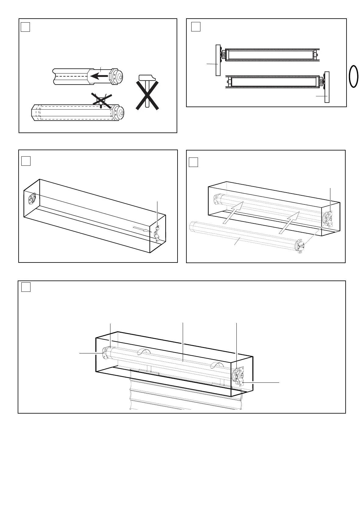 De afbeelding toont tevens de muursteun aan de aandrijfkant (b), de motoraandrijving (a), de stalen buis (c); de eindstop (d) en muursteun aan de