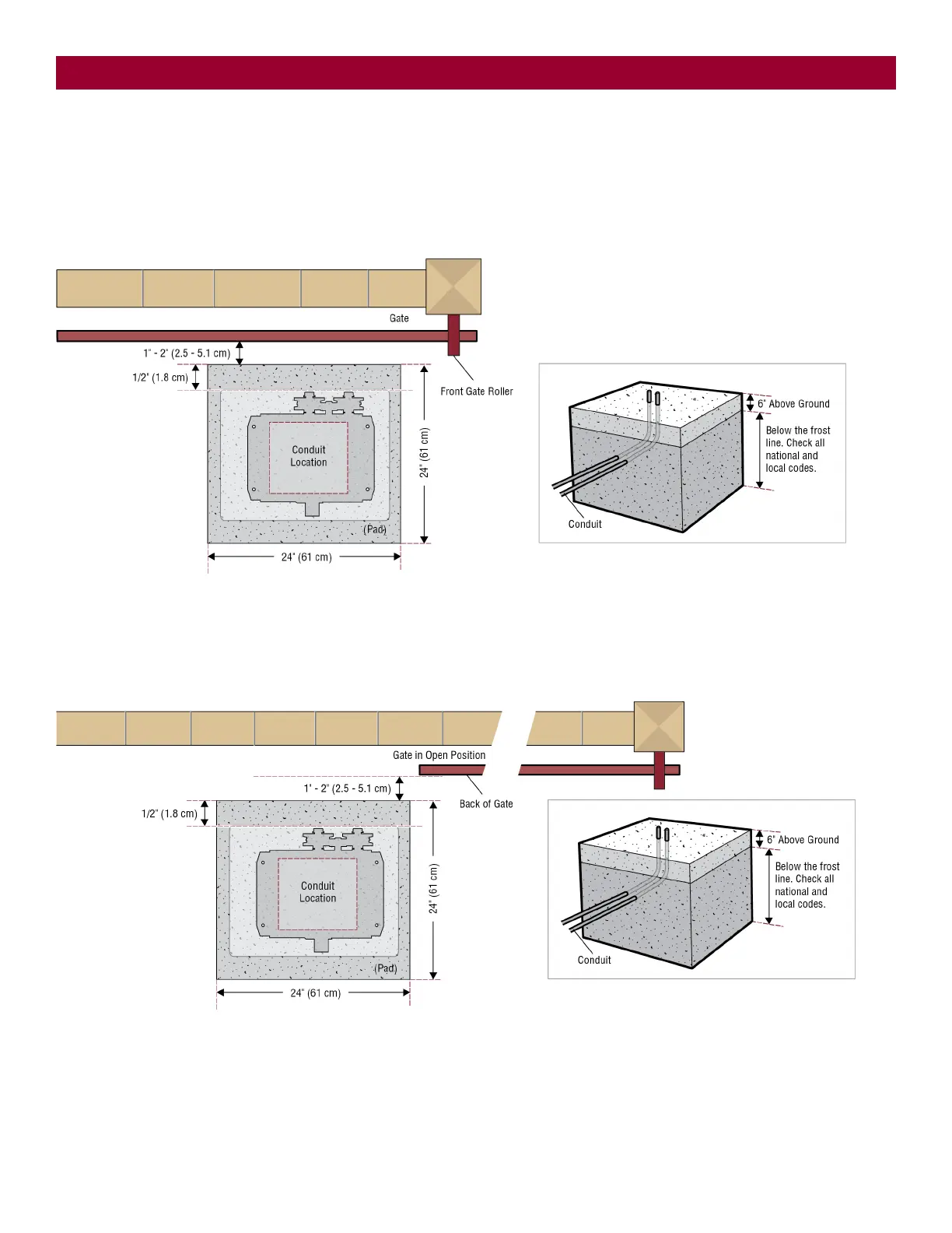 1. The gate operator should be installed near the back of the gate in the OPEN position. Lay out the concrete pad.