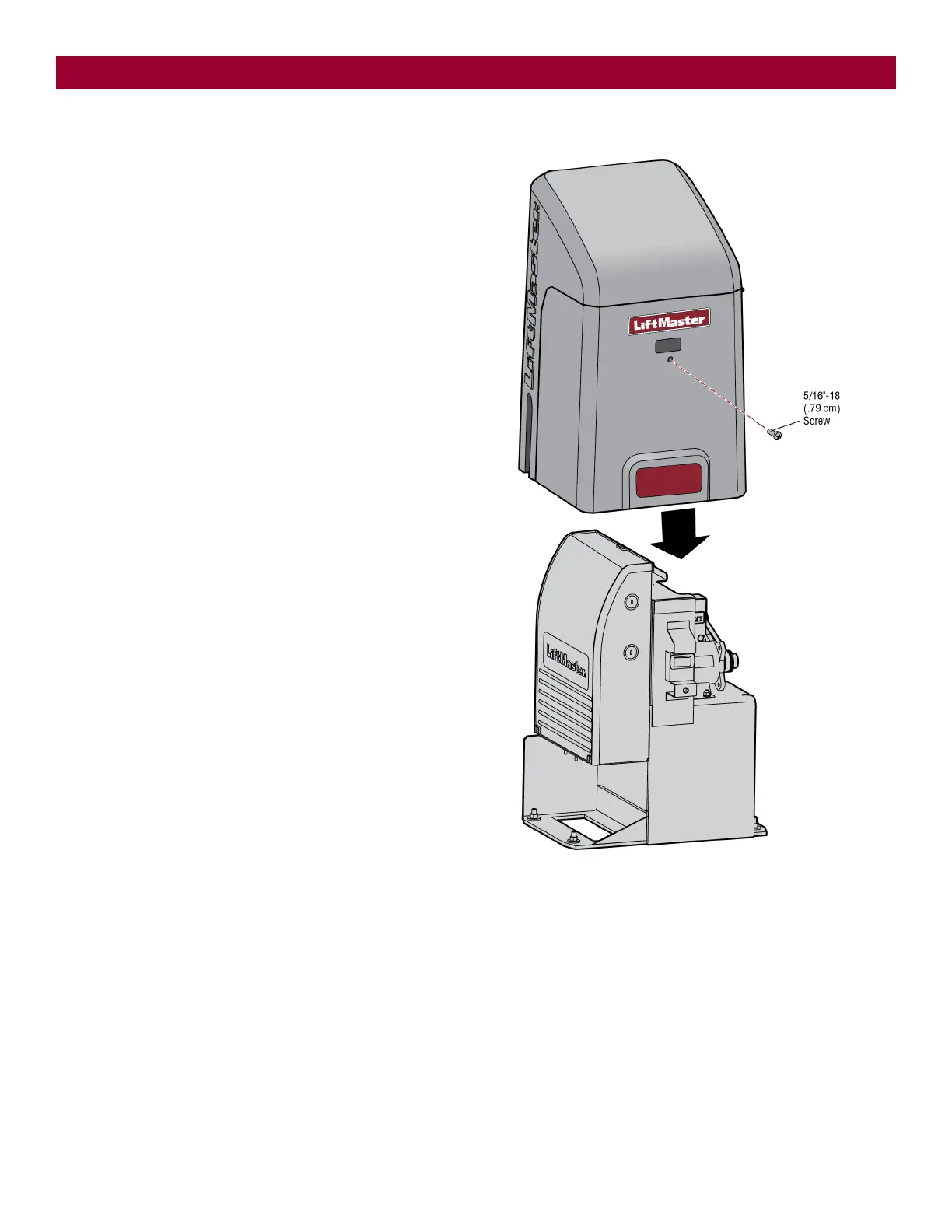 2. Align the hole in the cover with the threaded hole in the operator's