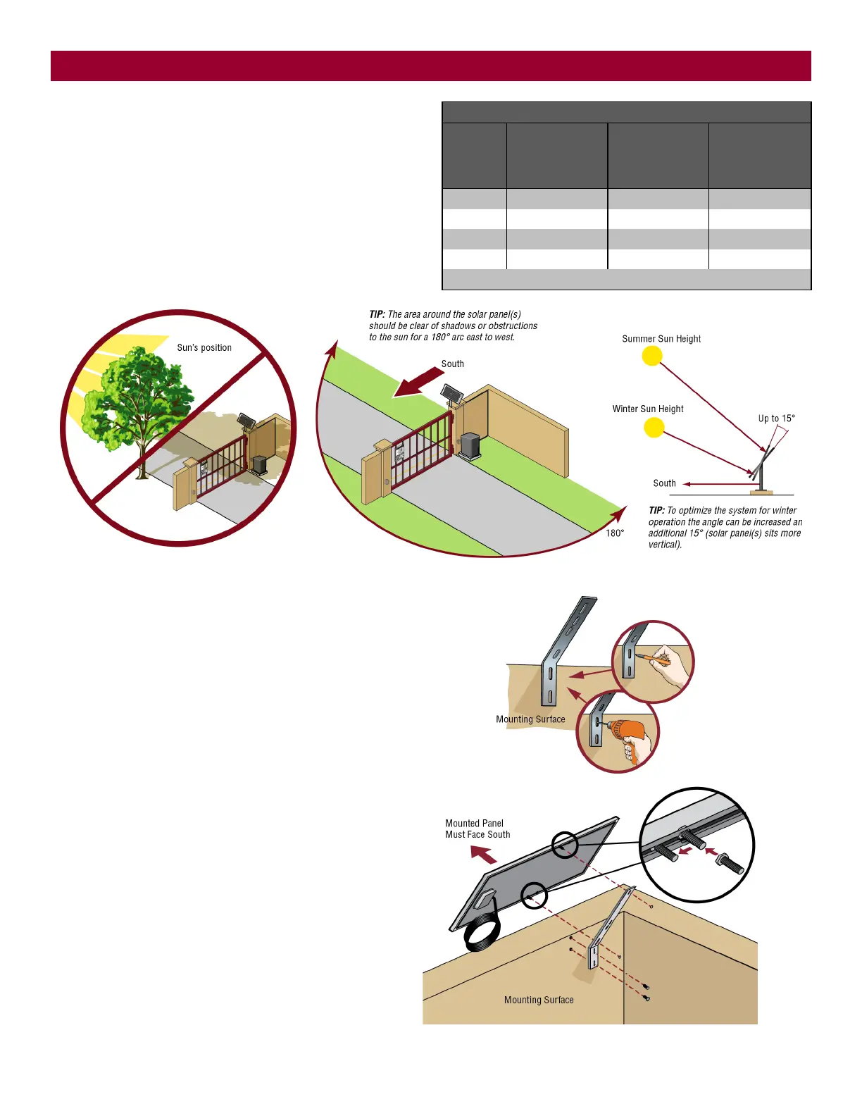 facing due south. The solar panel(s) should be mounted in an area clear of