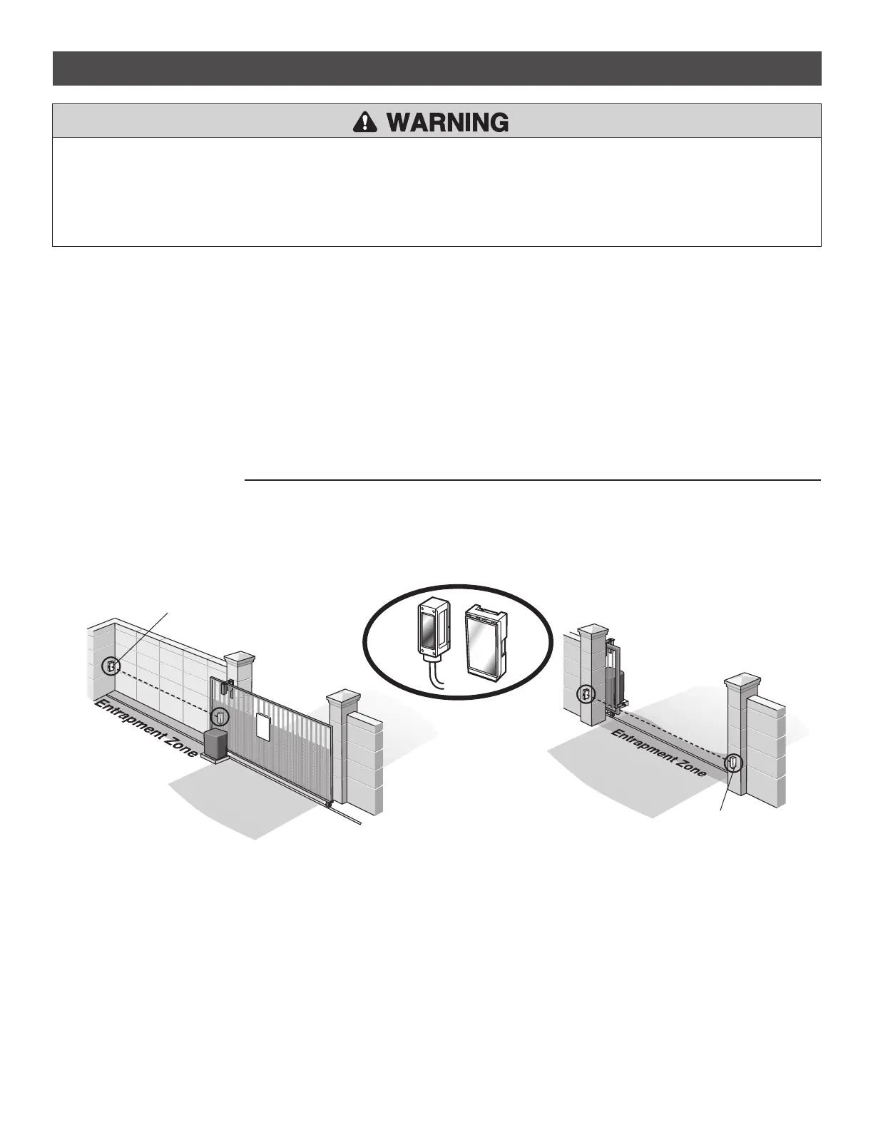 • Entrapment protection devices MUST be installed to protect anyone