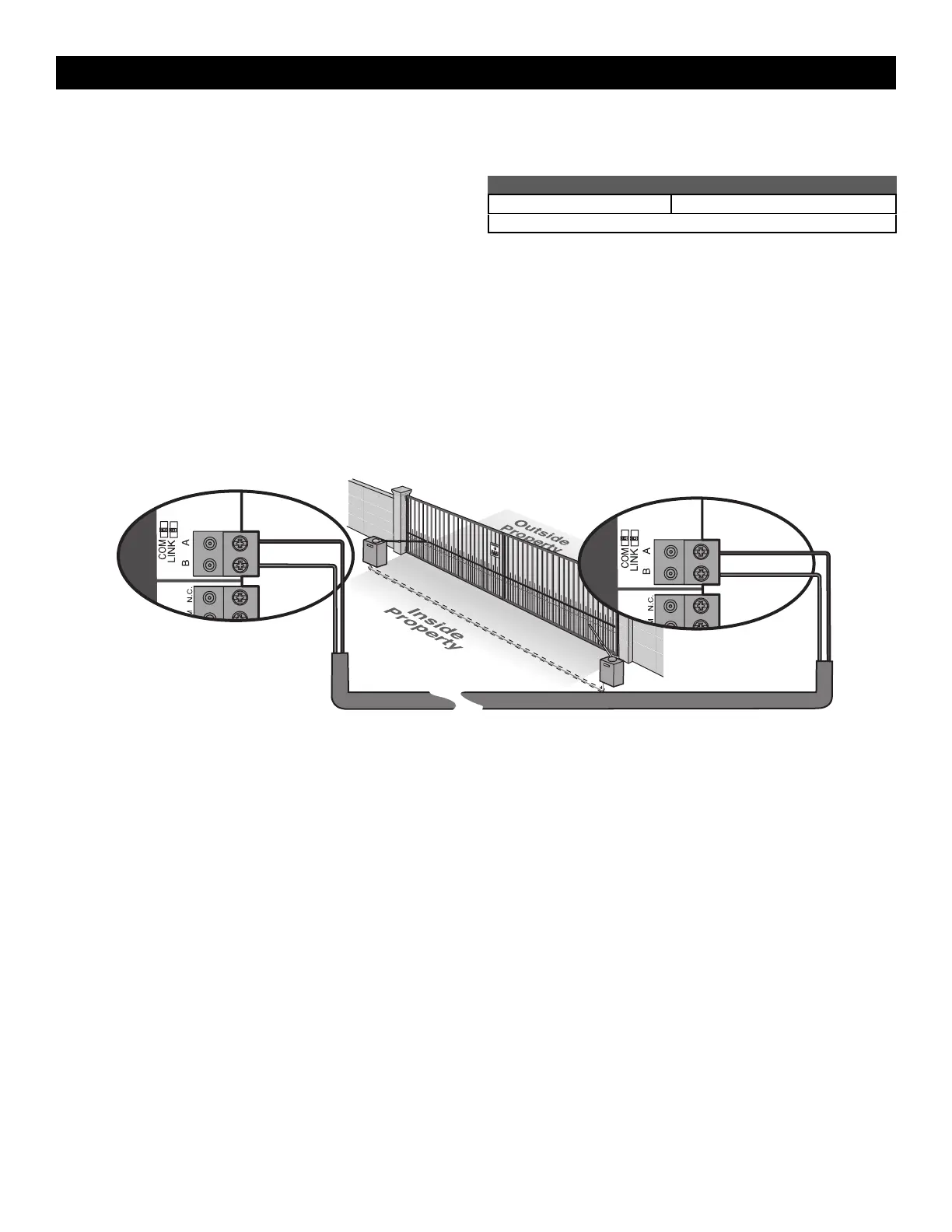 There are two options for dual gate communication: wired or wireless. Follow the directions according to your application. Do not use wired and