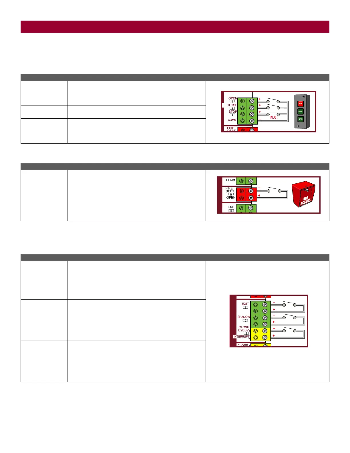 STOP and COMM Stops a moving gate. Hard stop (maintained switch overrides Open