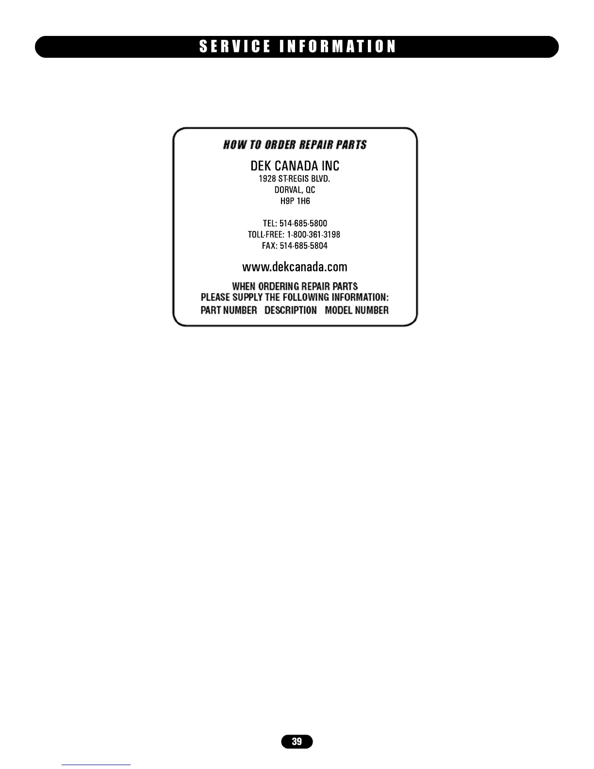 DEK CANADA INC