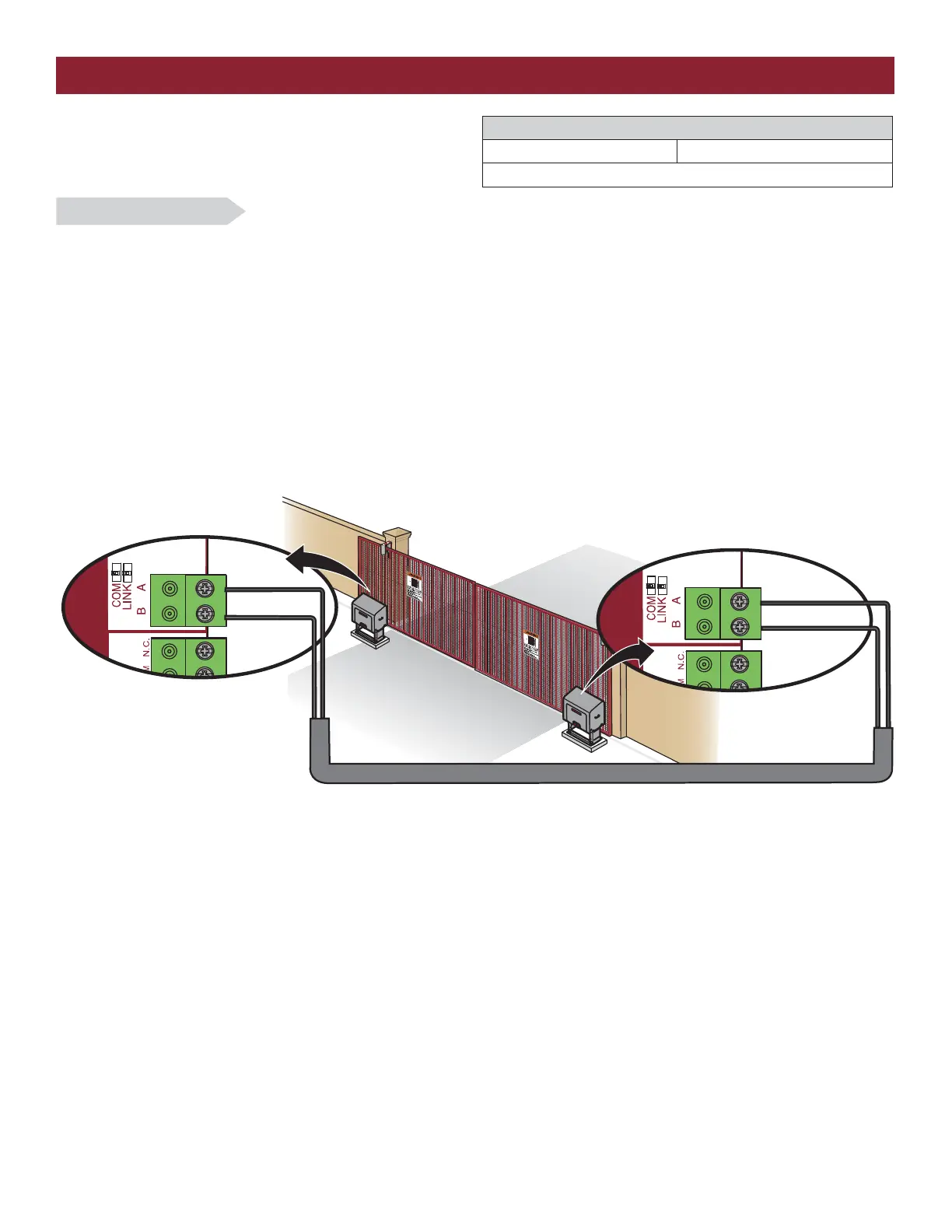3. Connect the wires from the shielded twisted pair cable to the Com Link terminals on the primary gate operator control board. NOTE: We