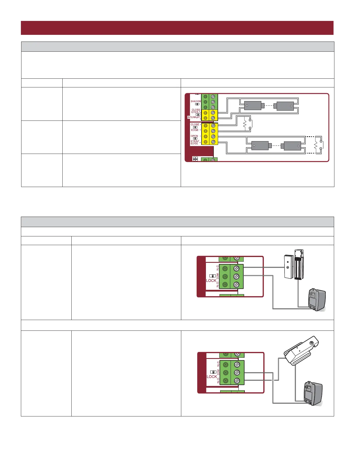NC and COM Normally Closed (N.C.) output for maglocks. Relay