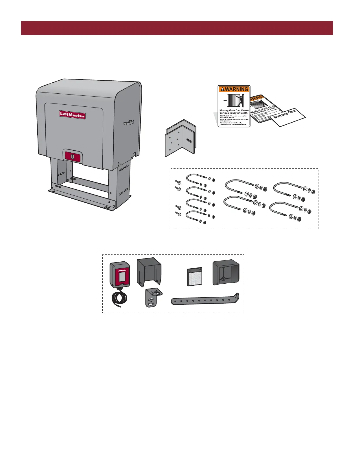 NOT SHOWN: Documentation Packet, Chain #50 - 24 feet, Eye Bolt Kit