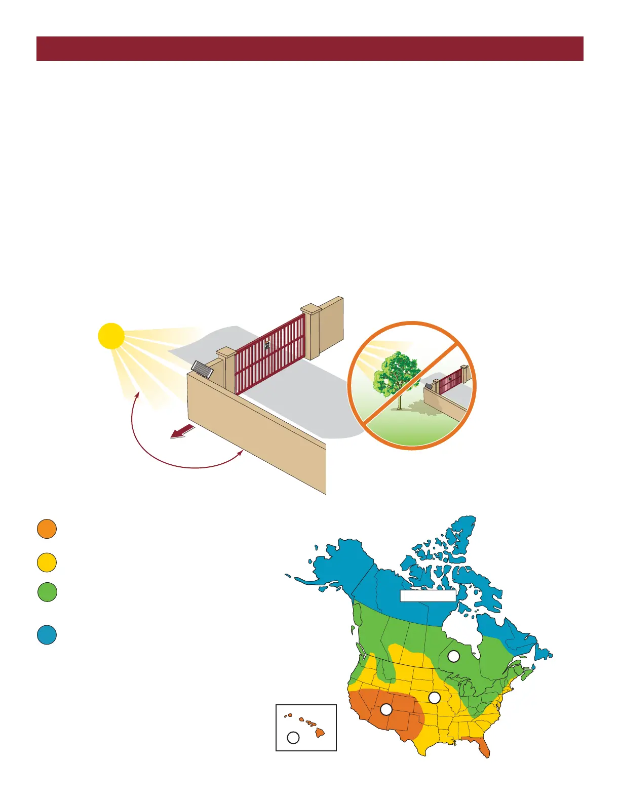 • Check that the number of gates cycles corresponds with the solar zones (see below). Refer to your gate operator manual for specific gate cycles.