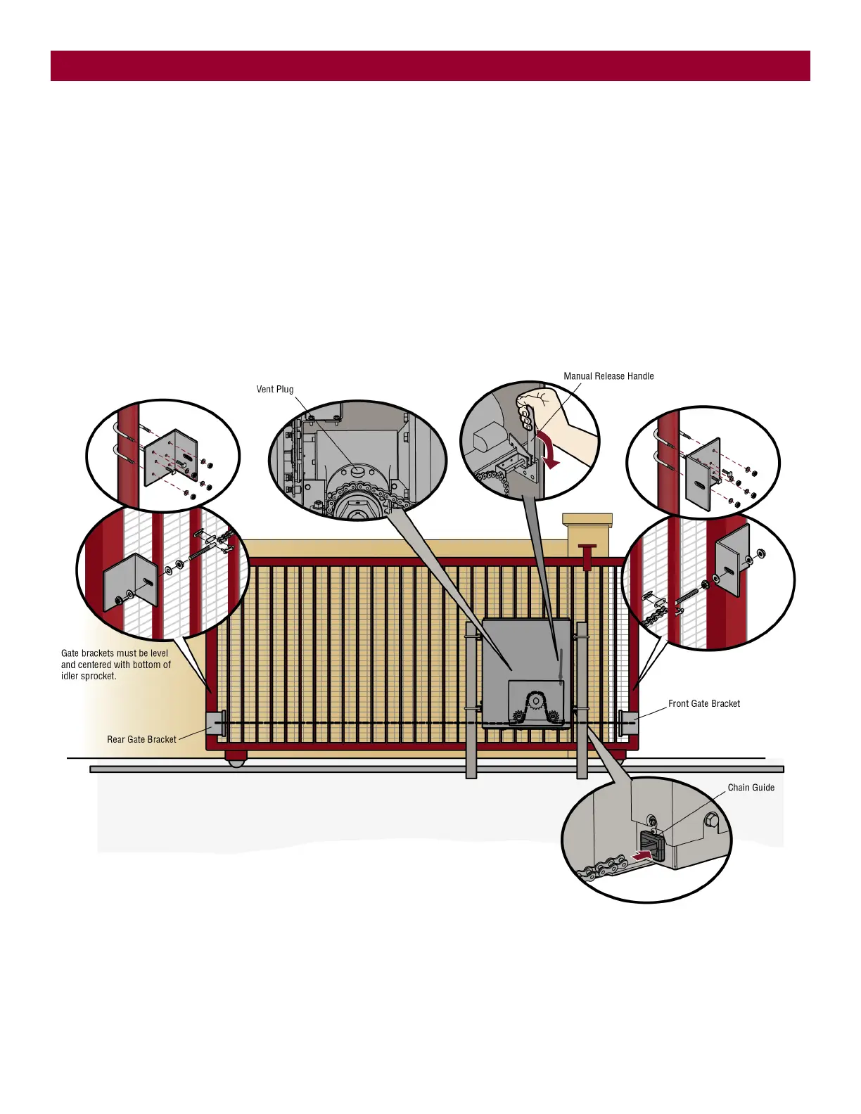 1. Mount gate brackets to the vertical front and rear posts of the gate.