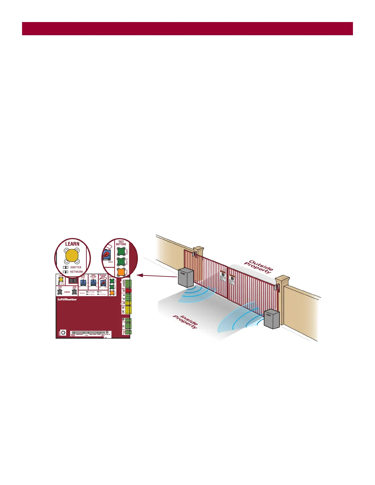 1. Press and release the LEARN button on either operator. The green XMITTER LED will light.