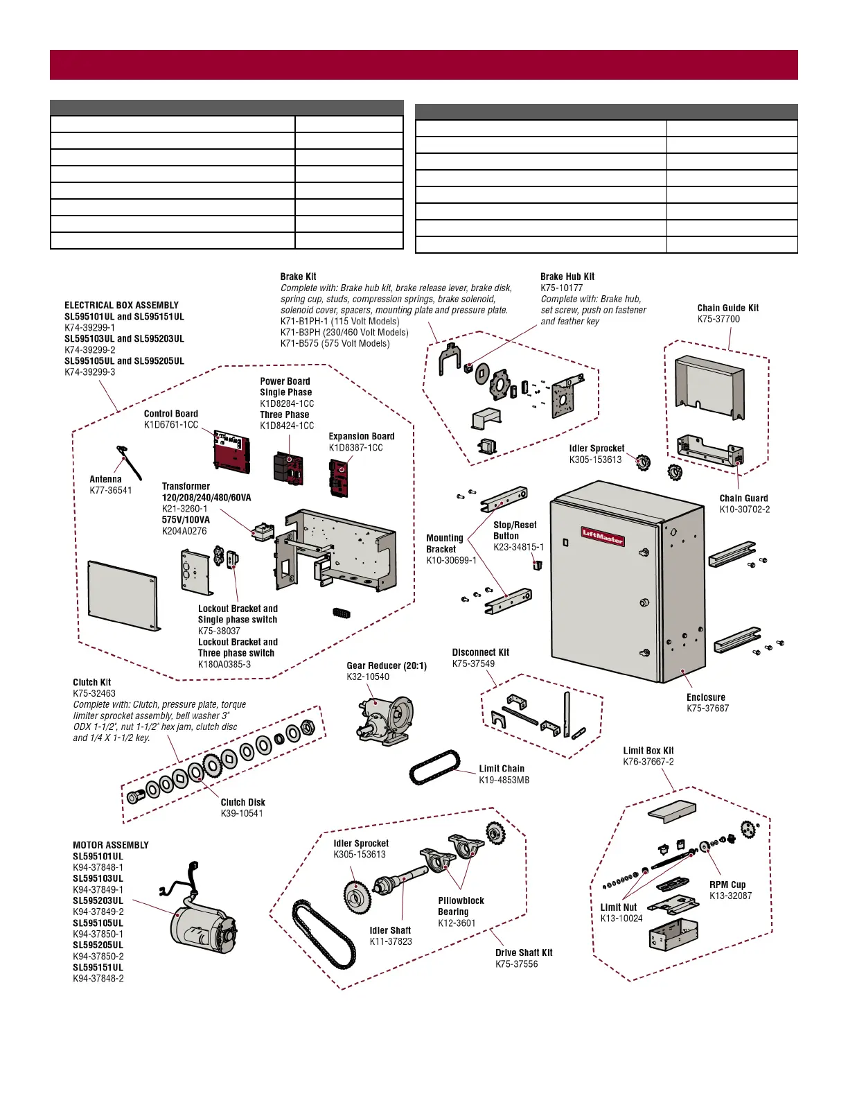 REPAIR PARTS (NOT SHOWN)