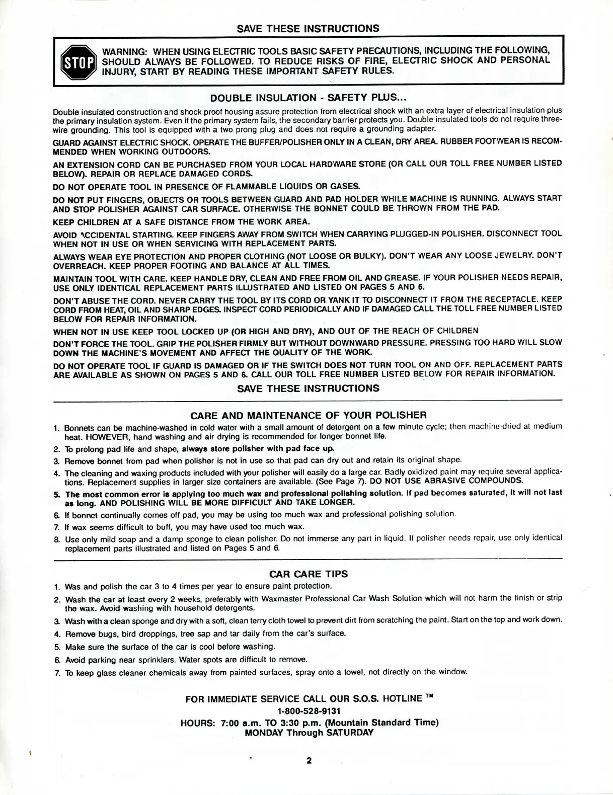CARE AND MAINTENANCE OF YOUR POLISHER