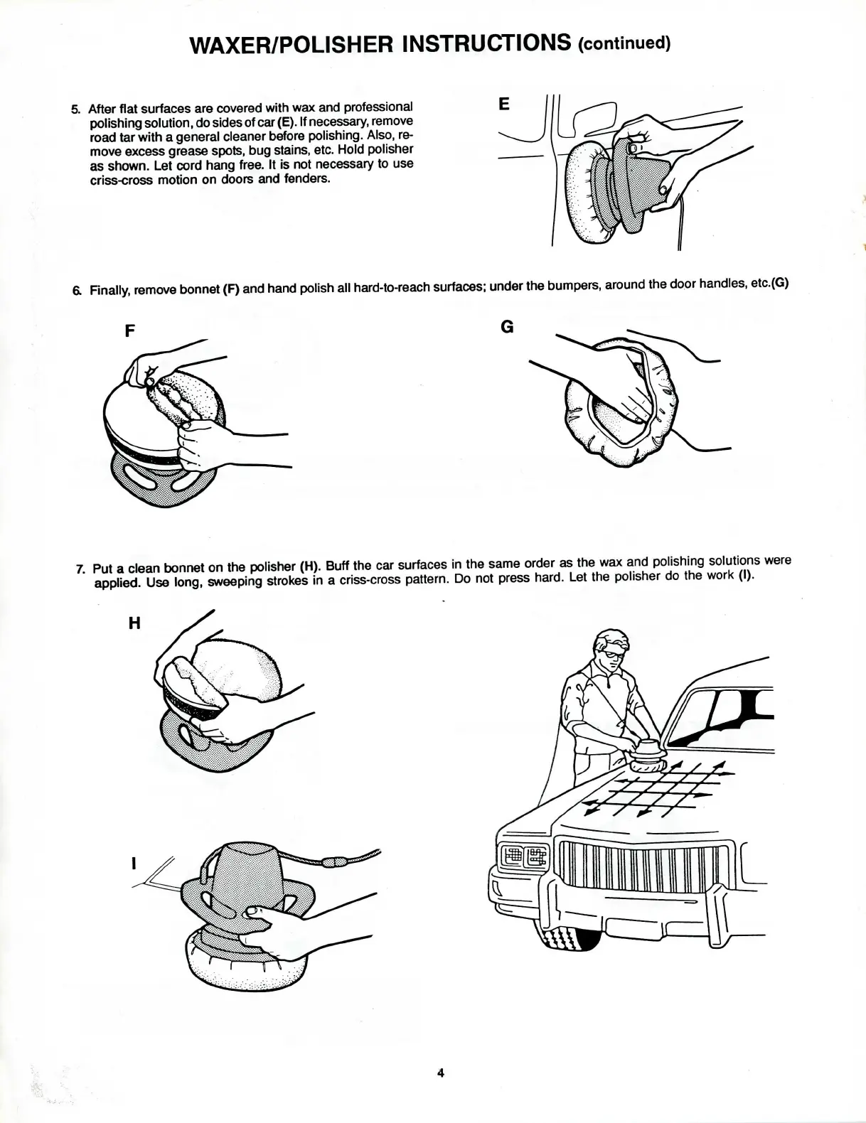 WAXER/POLISHEH INSTRUCTIONS (continued)