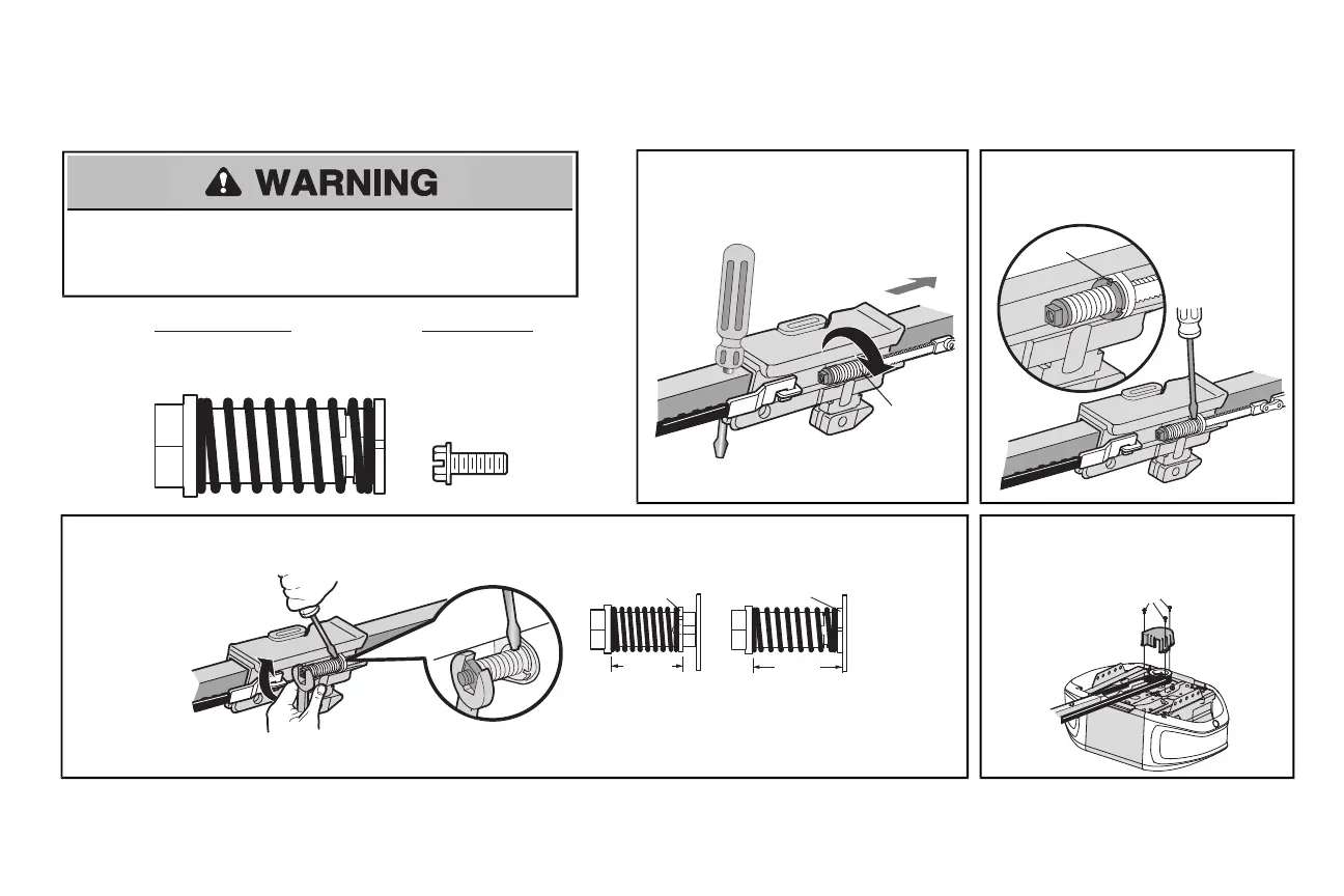 5.3 Tighten the spring trolley nut with an adjustable wrench or a 7/16" open end wrench abouta quarter turn until the spring releasesand snaps the