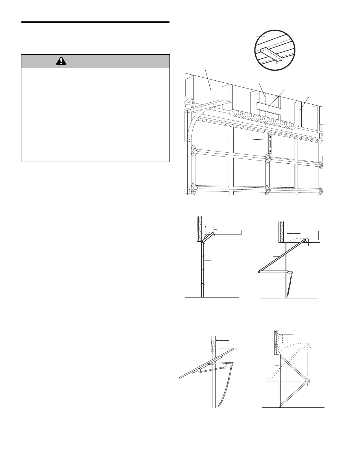 • NEVER try to loosen, move or adjust garage door, springs,