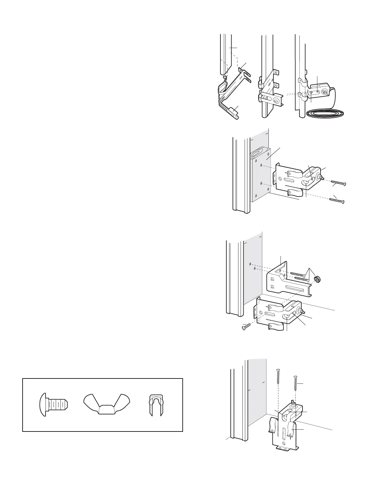 • Attach brackets to wall with lag screws (not provided).