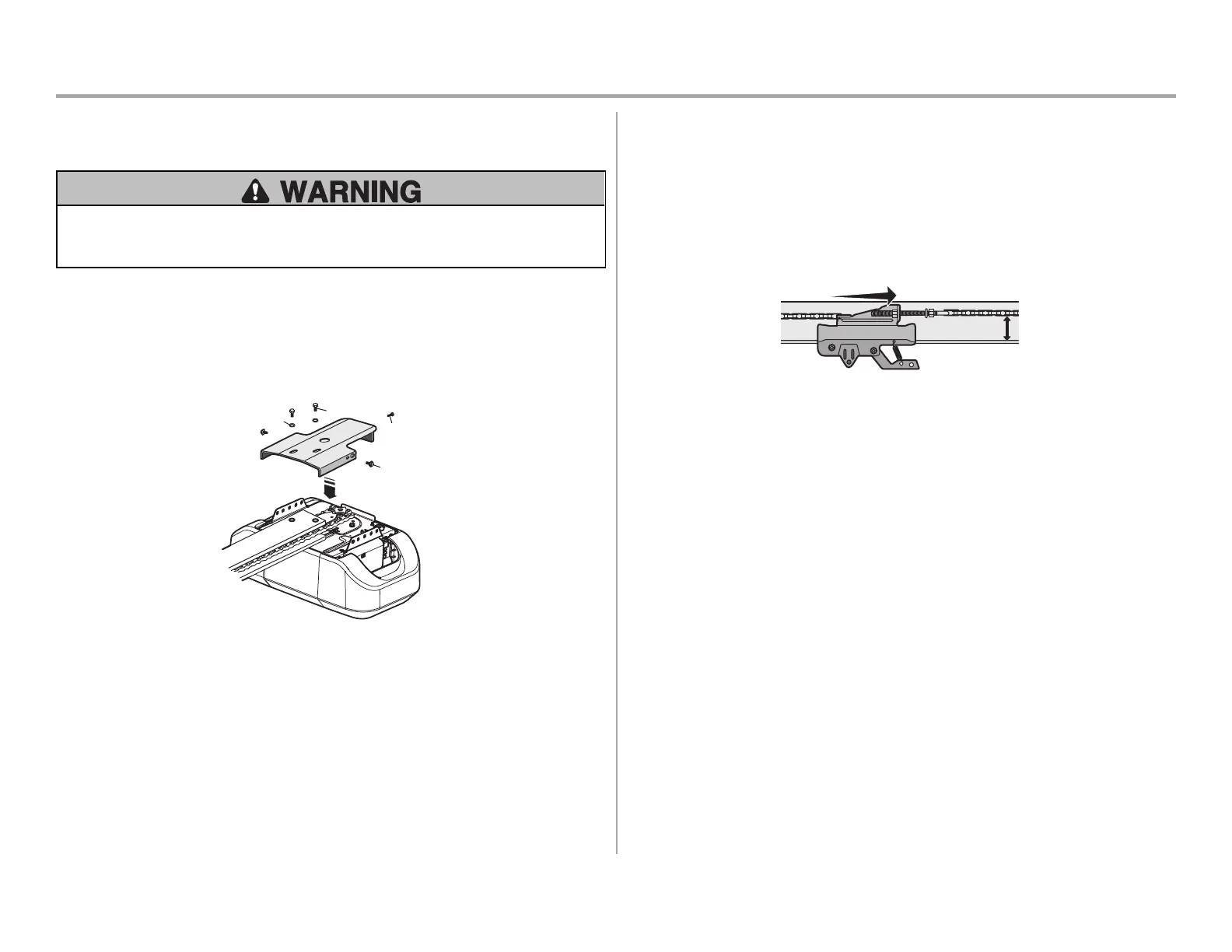 l ALWAYS keep hand clear of sprocket while operating opener.
