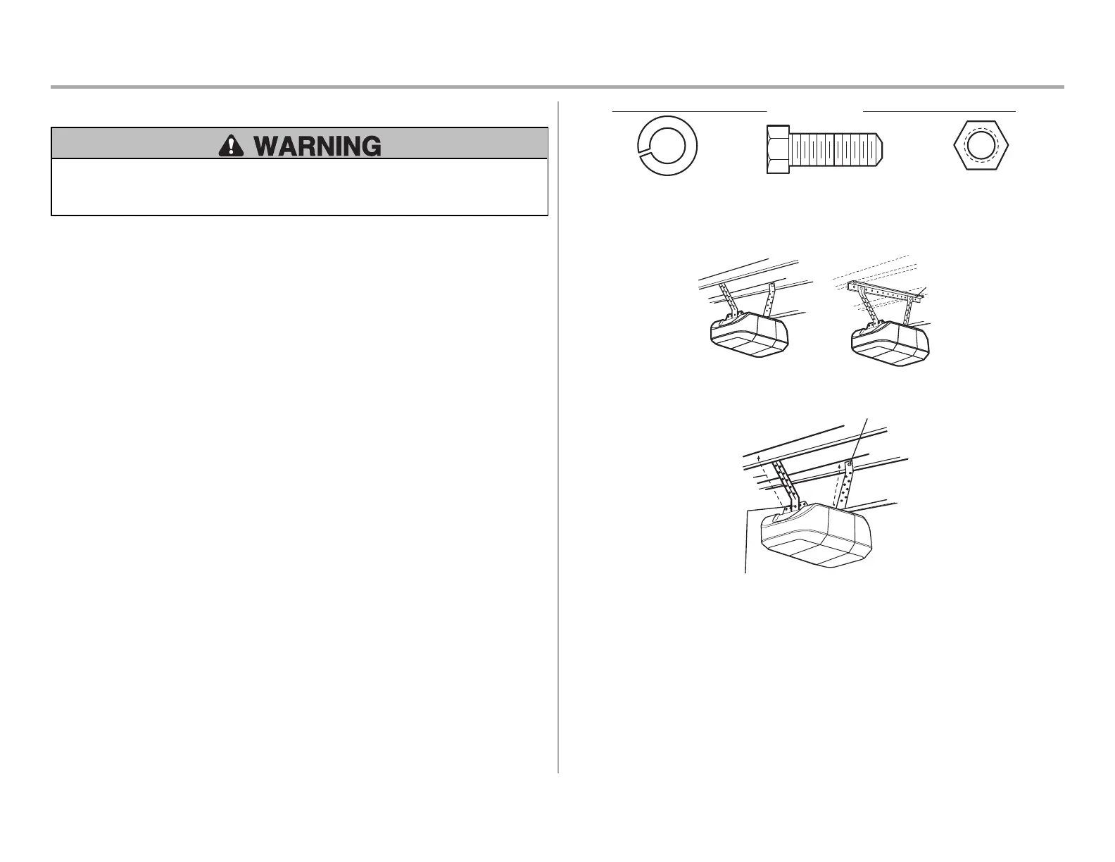 supports before installing the opener. This bracket and fastening hardware are not provided.