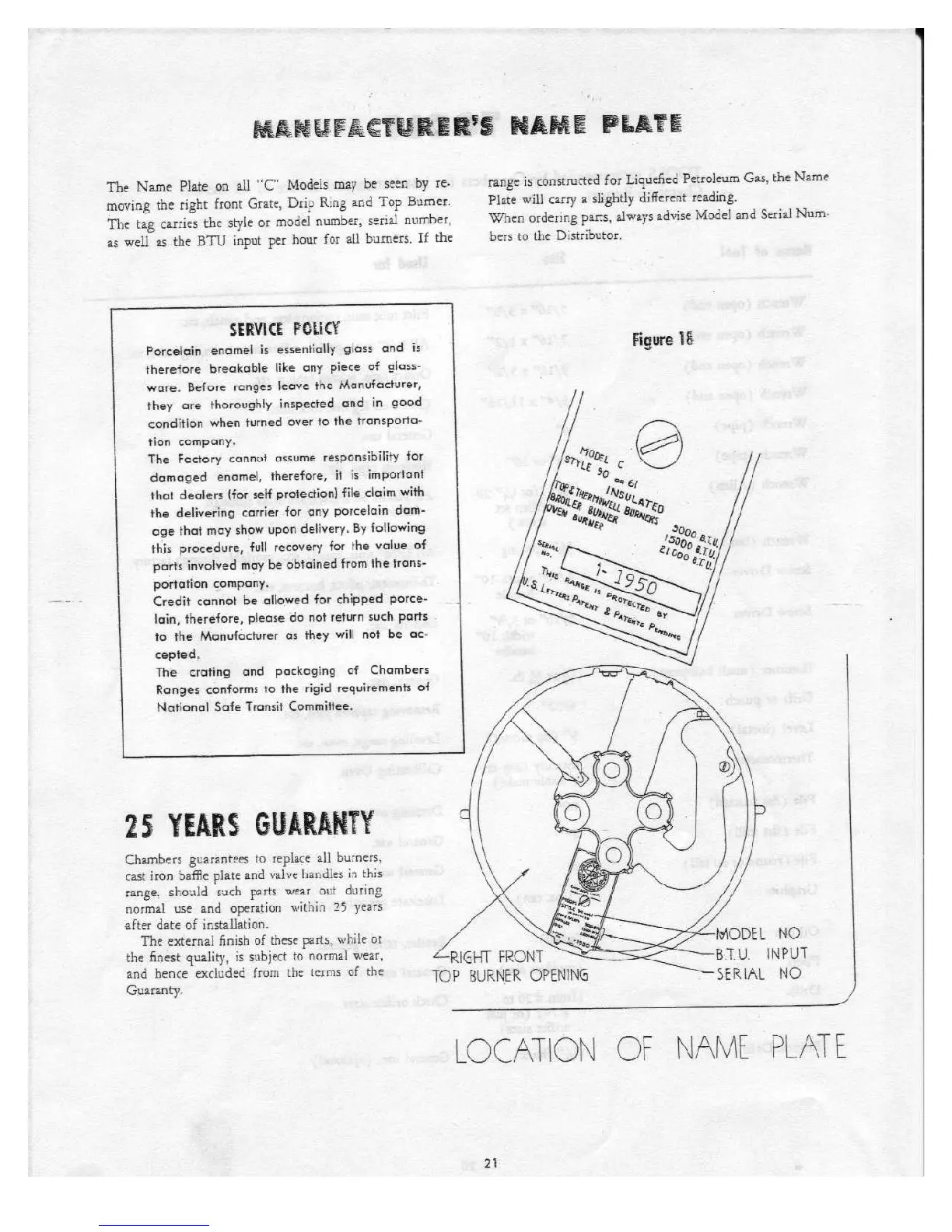 Chambers C series - Manufacturers Name Plate