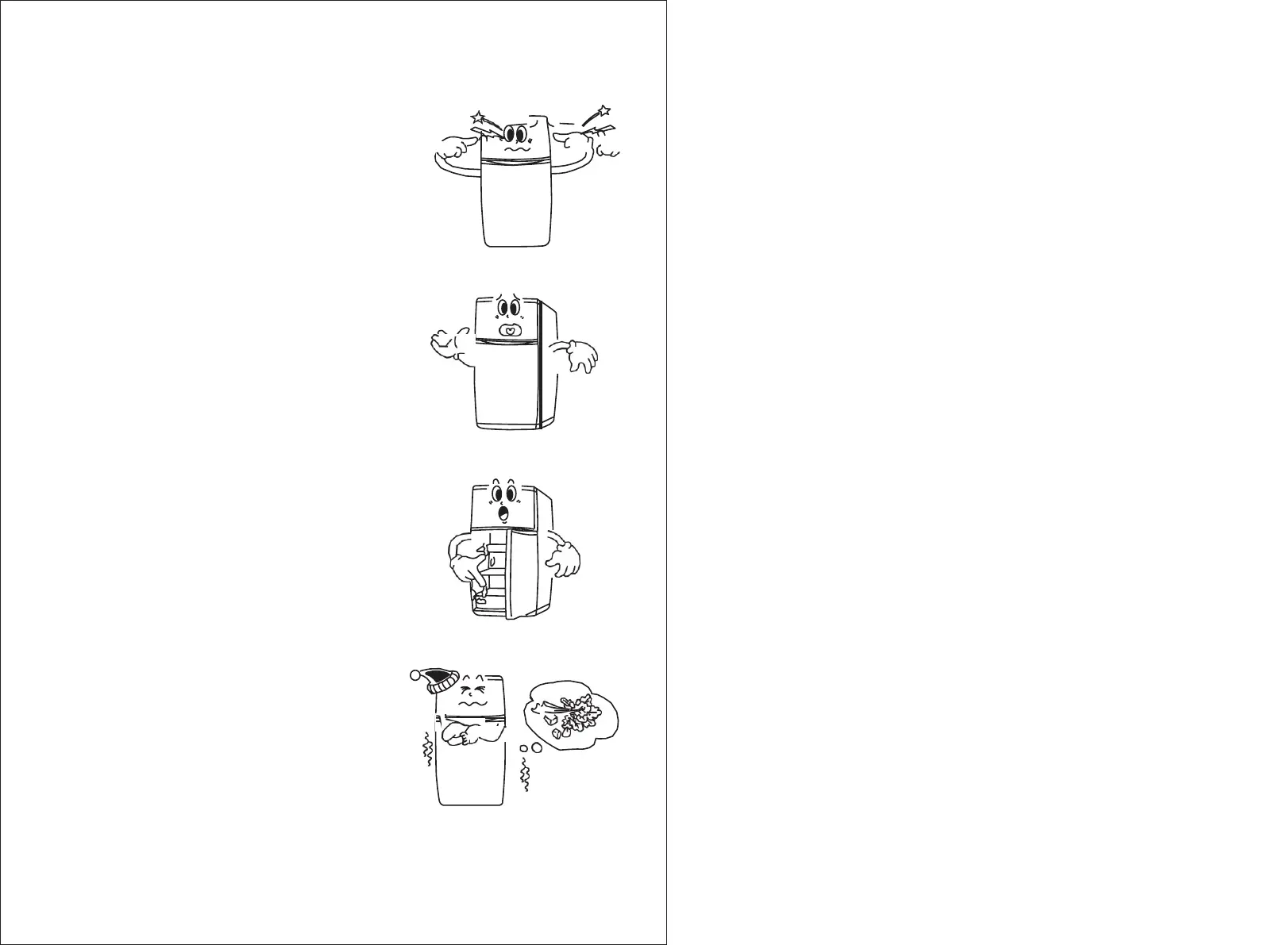 • Too much food is placed in the refrigerator and there are insufficient spaces for airflow.