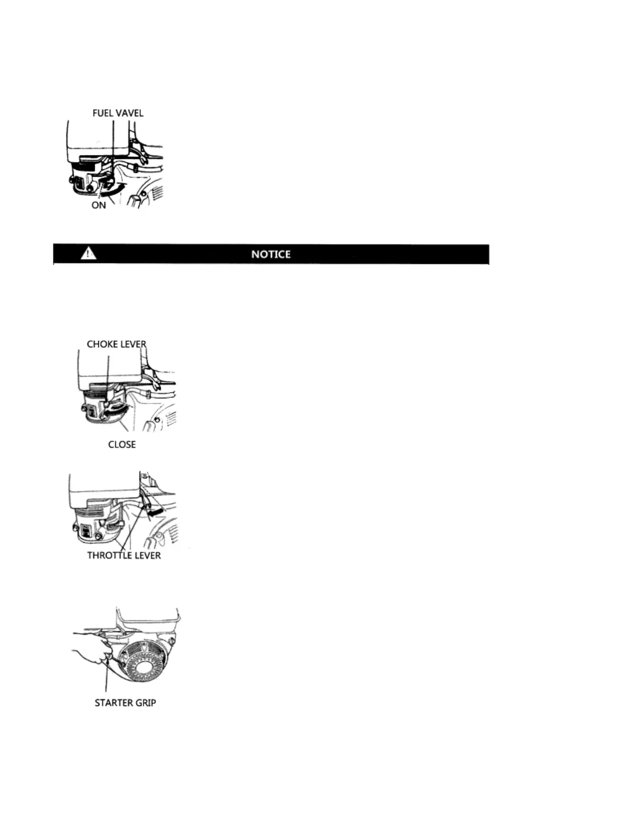 Full the starter grip lightly until resistance is felt, then pull briskly.