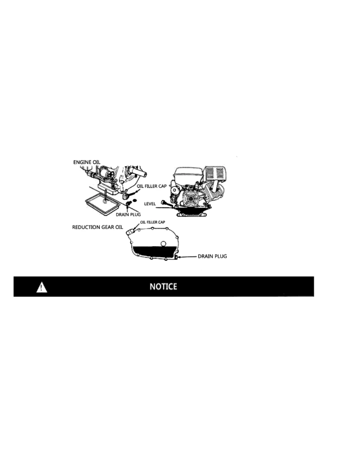 1. Remove the oil filler cap and drain plug to drain the oil.